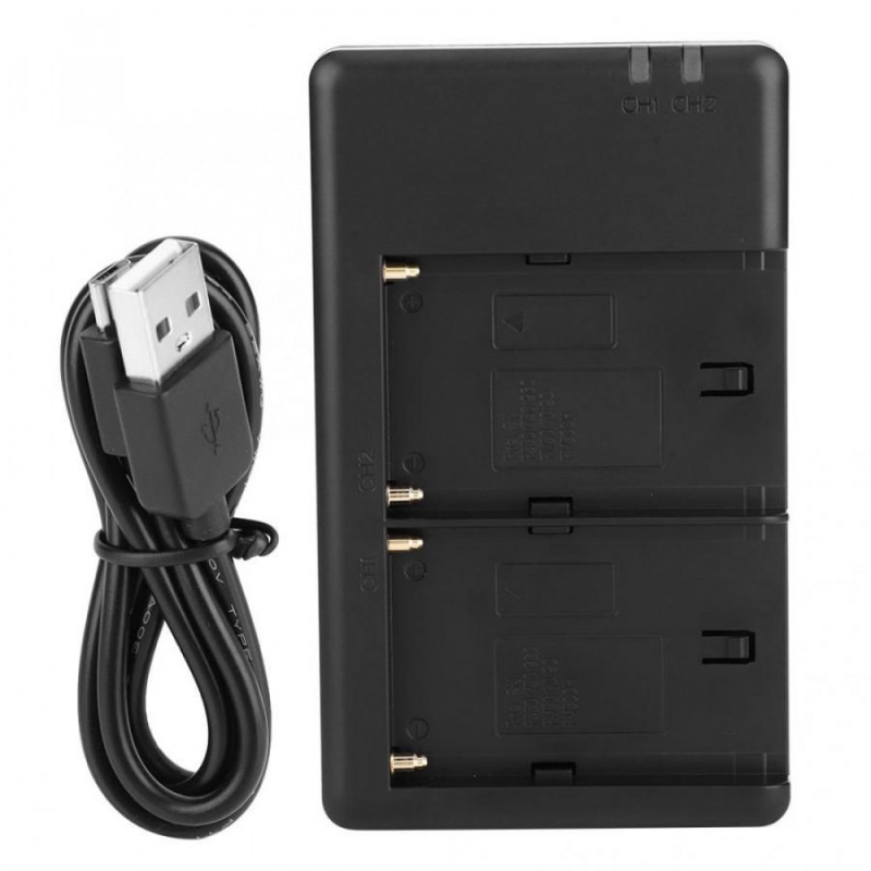 Зарядное устройство для 2-х аккумуляторных батарей Sony FM50/F970/F750/F550NP, или аналогичных. Питание от разъема USB