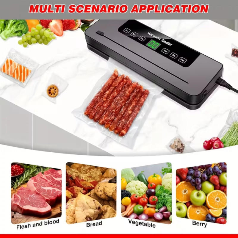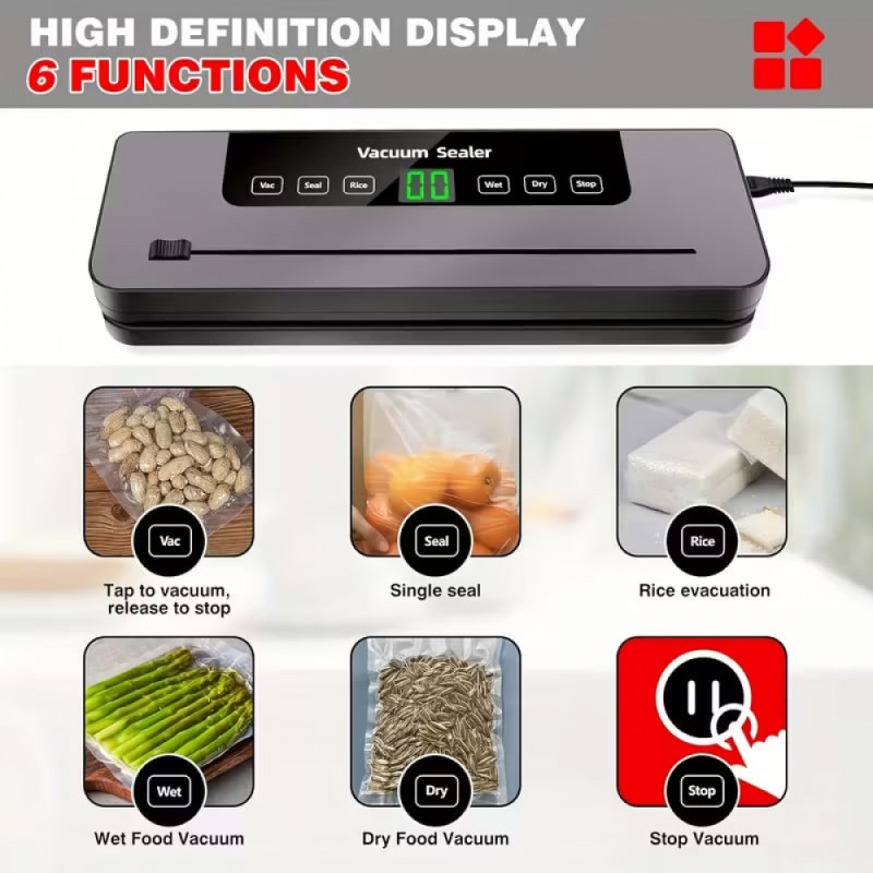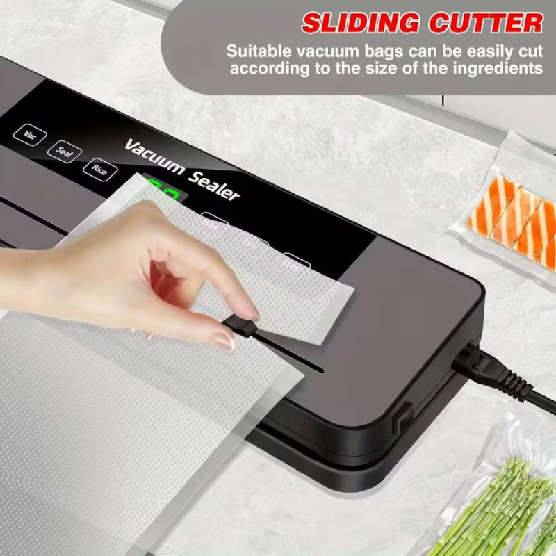 Вакуумний пакувальник для продуктів з LED-дисплеєм, різаком і 10 пакетами