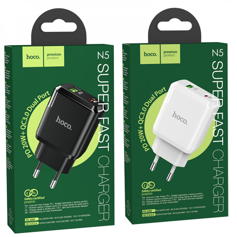 Home Charger | 20W | PD | QC3.0 — Hoco N5 — Black