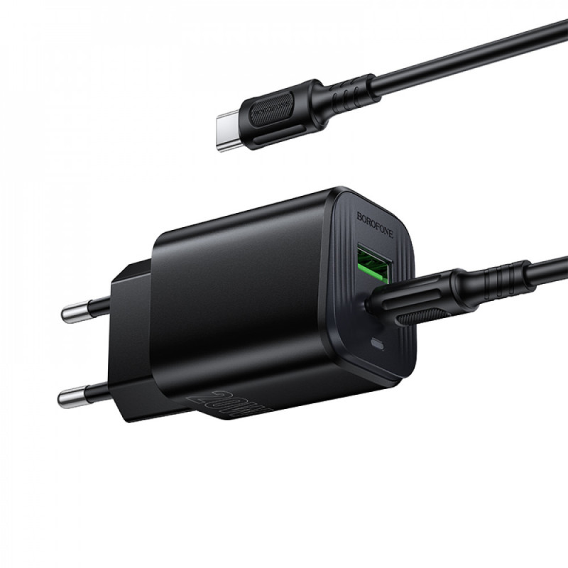 Home Charger 20W PD QC3.0 C to C Cable (1m) Borofone BAS83A — Black